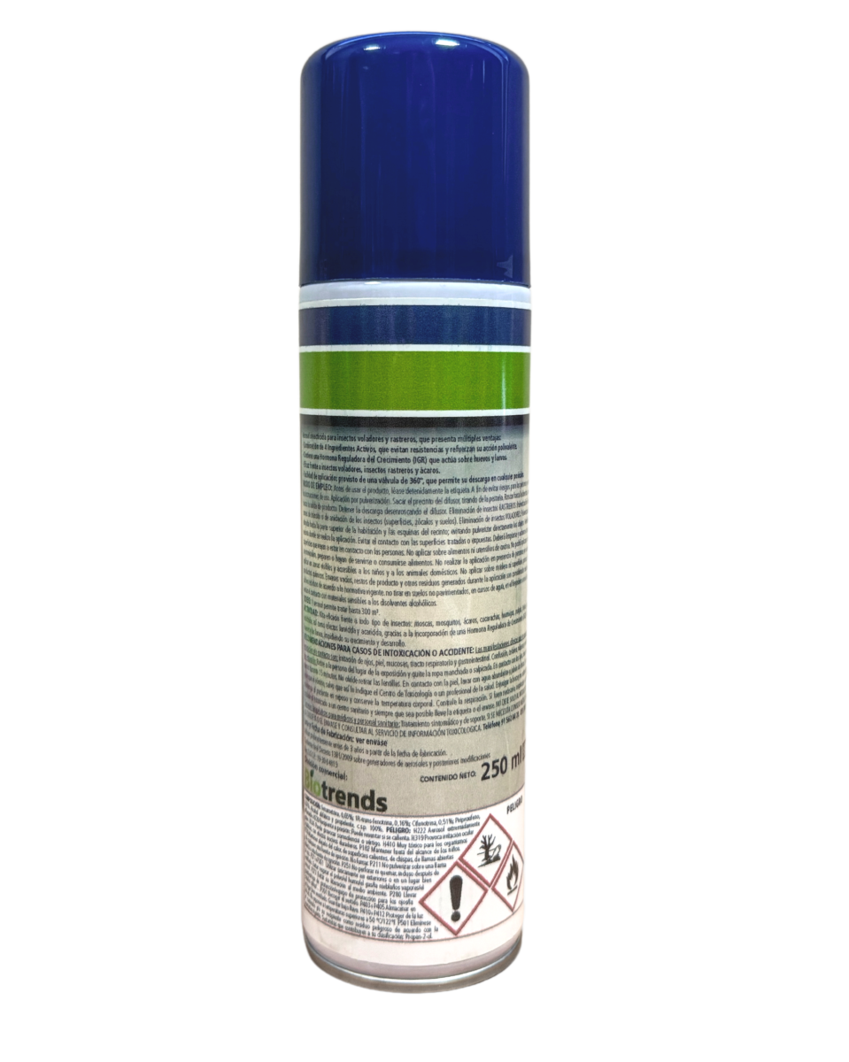 - Contiene cuatro ingredientes activos, que evitan resistencias y refuerzan su acción polivalente frente insectos voladores y rastreos.