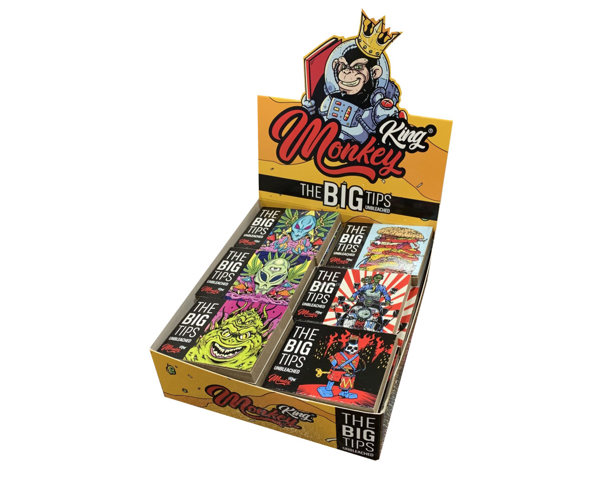 Expositora de filtros con exclusivos diseños de la marca Monkey King. Estos filtros tienen medidas de 40×54.