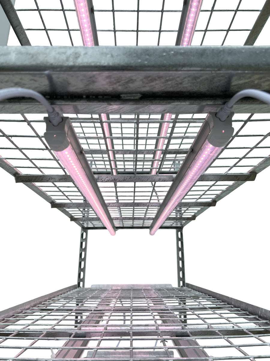 Carro completo de propagación de clones/semillero con sistema LED integrado. Cuenta con 5 bandejas que pueden albergar hasta 15 propagadores en los que se pueden cultivar 2250 semillas/esquejes (dependiendo del tipo de bandeja). Su recubrimiento de zinc galvanizado lo hacen apto para uso alimentario.