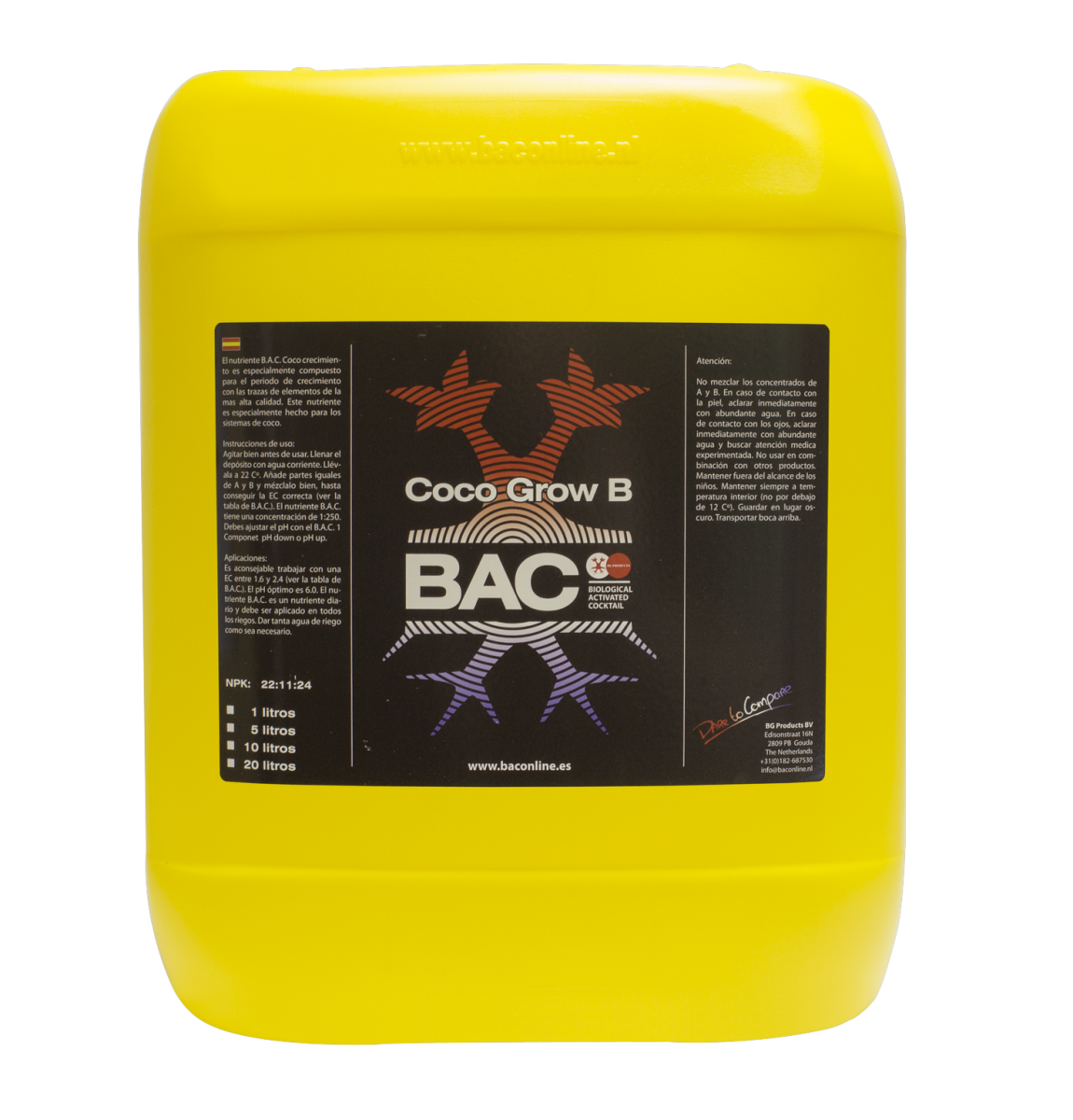 Completa tus sustratos de coco en slabs o macetas de fibra de coco con el Coco Grow B + ref#727103. Una mezcla concentrada de nutrientes que ofrecerá los nutrientes indispensables para tener un crecimiento rápido y fuerte. Complementa Coco Bloom y Coco Grow para que durante todo el ciclo la planta pueda acceder fácilmente a los nutrientes minerales necesarios.