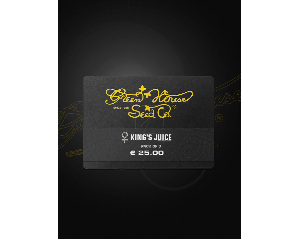 Variedad que surge de combinar una Mimosa de genética Symbiotic y una King’s Kush con la que se obtiene una planta de buen crecimiento y de forma cónica. Cuenta con genética 60 % sativa y 40 % índica. El periodo de floración de la King’s Juice es de entre 9 y 10 semanas.