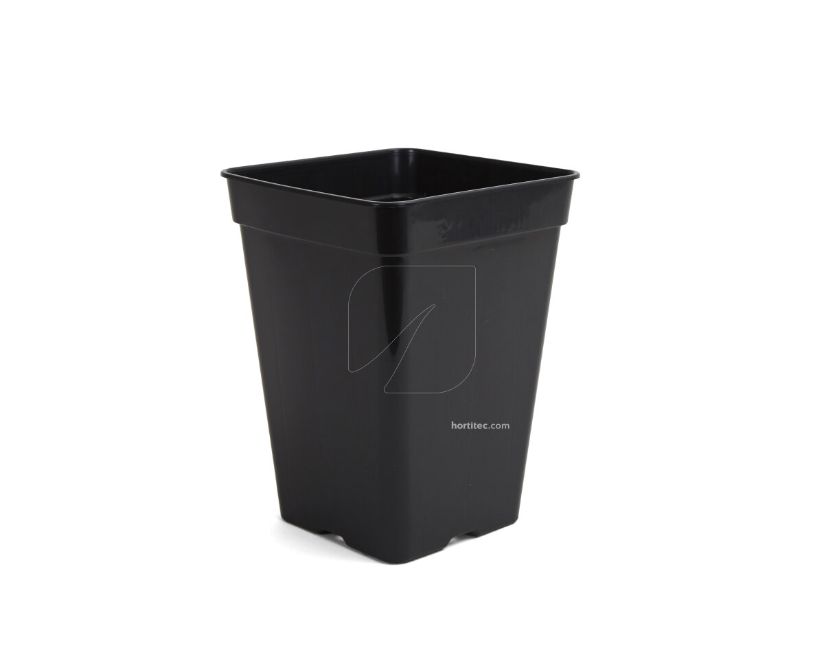 Estas macetas de color negro son sólidas, cuadradas con el fondo elevado para un drenaje sin problemas y para un aprovechamiento máximo del espacio en invernaderos, ideales para cultivos interiores.