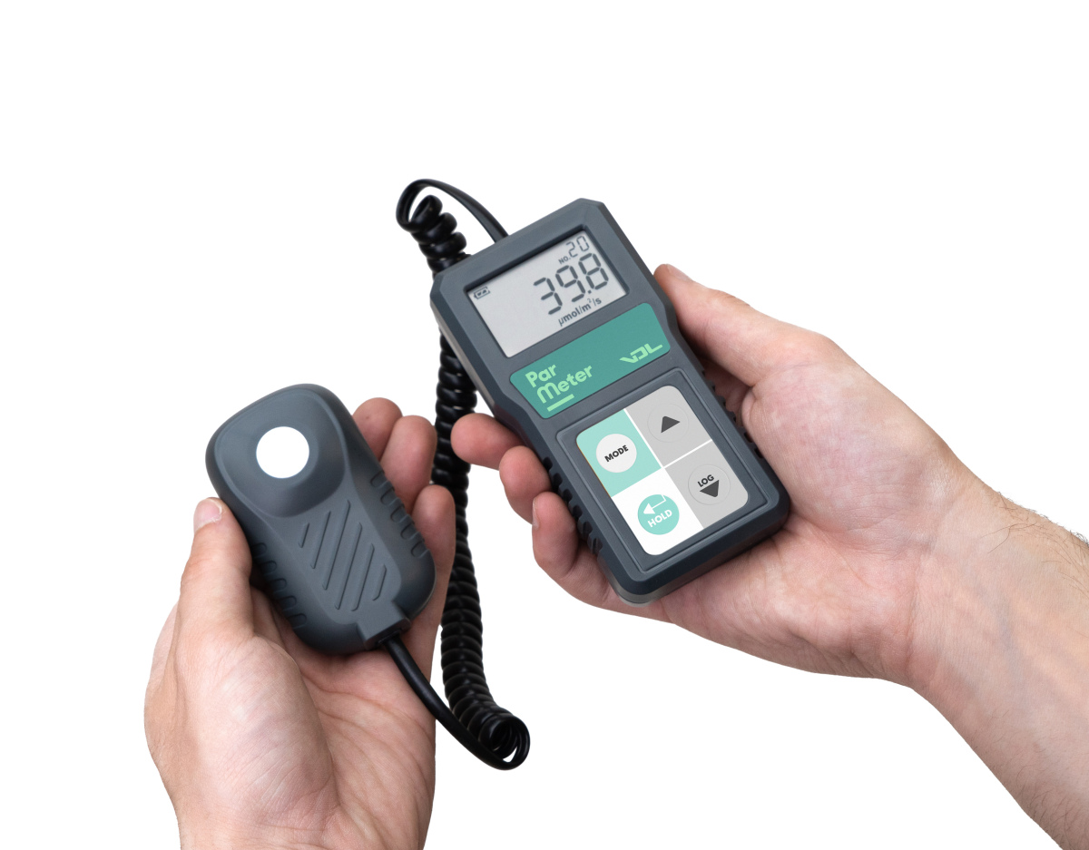 VDL presenta el Par Meter, un medidor de radiación fotosintéticamente activa. El medidor PAR METER está diseñado para medir el flujo RFA en longitudes de onda que oscilan entre 400 y 700 nm. Existe una relación proporcional entre el número de fotones absorbidos en la banda de 400 a 700 nm y la tasa de fotosíntesis en las plantas, lo que es importante para los estudios hortícolas y el seguimiento de la fisiología vegetal.
