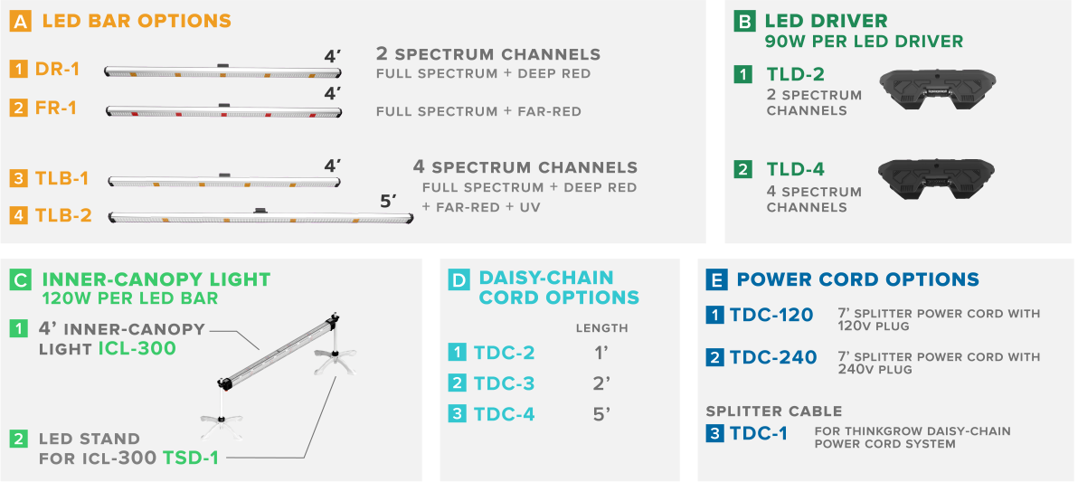 La barra de LED de 4′ con 4 canales de espectro (blanco + rojo intenso + rojo lejano + UV) para el sistema LED Model One, TLB-1, es una barra de luz LED avanzada de 4′ que incluye cuatro canales de espectro, incluidos espectro completo, rojo intenso, rojo lejano y UV. Cuando se conecta a un controlador TrolMaster, la TLB-1 puede replicar las propiedades de la luz solar natural al permitir que el usuario ajuste el espectro de luz real. Cada TLB-1 proporciona 90 vatios de luz, satisfaciendo eficazmente las necesidades de TODAS las fases, desde la fase vegetativa hasta la floración.