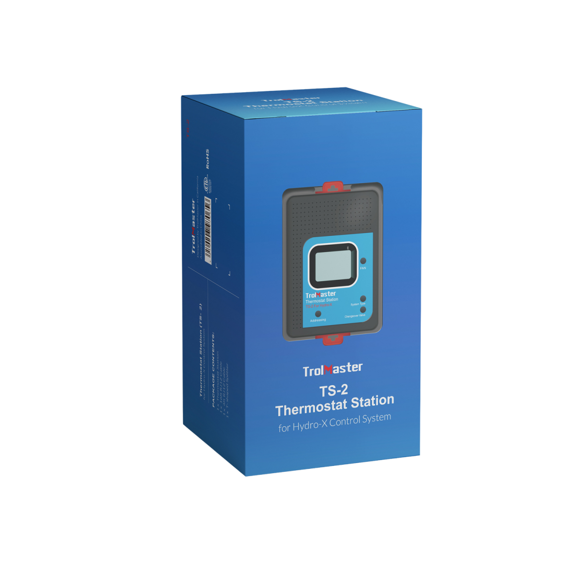 Las estaciones de termostato TS-2 están diseñadas para sustituir a un termostato conectado a una unidad HVAC estándar. La TS-2 puede utilizarse para controlar la mayoría de los sistemas HVAC, incluidos los sistemas de bomba de calor y los sistemas HVAC multietapa. El TS-2 se conecta al sistema HVAC utilizando el mismo cable de termostato de bajo voltaje, y tiene el cableado estándar codificado por colores que la mayoría de los termostatos. El Hydro-x permite ajustes Día y Noche independientes para cada uno de los (4) módulos TS, de modo que un único sistema Hydro-X puede controlar varios sistemas HVAC. El TS-2 también dispone de un tiempo de retardo ajustable para cada sistema HVAC que se active. Esto minimiza los arranques bruscos (corriente de entrada) y permite controlar de forma segura hasta 4 sistemas HVAC.