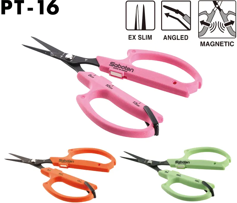 Tijeras Automáticas Profesionales son sistema antiadherente que cuentan con unos característicos imanes que permiten con mayor facilidad el cierre y recorte de la tijera. Los imanes en el interior de los mangos apoyan la acción de apertura de las tijeras y reducen enormemente la fatiga de la mano. Las cuchillas son de acero inoxidable japonés de alta calidad y están extremadamente afiladas. La combinación de cuchillas afiladas y mangos magnéticos ergonómicos aporta alegría a su trabajo. Las hojas de diseño de punta fina permiten un corte preciso en espacios reducidos y estrechos.